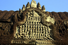 El templo está lleno de metáforas, como la lucha entre el bien y el mal, representado por una enorme serpiente, omnipresente en Angkor